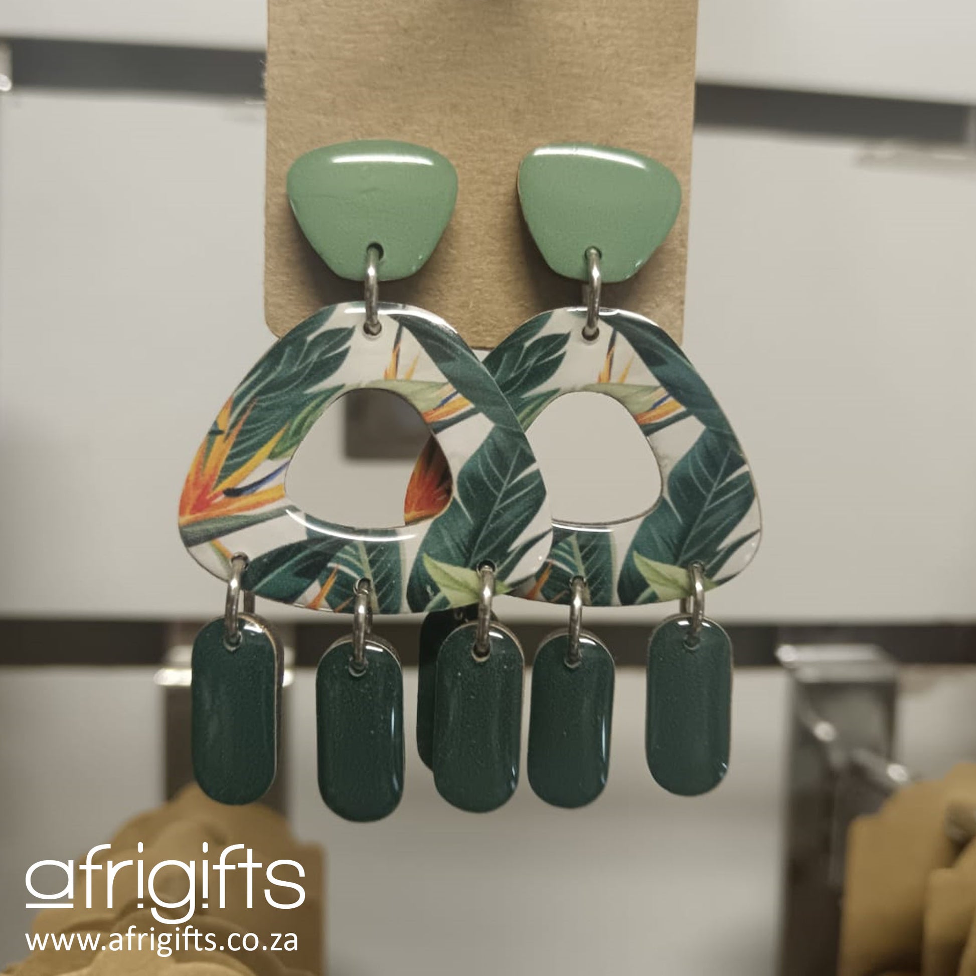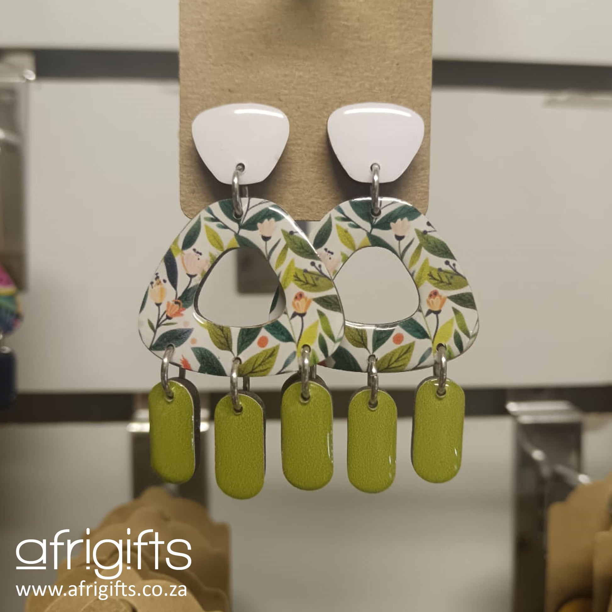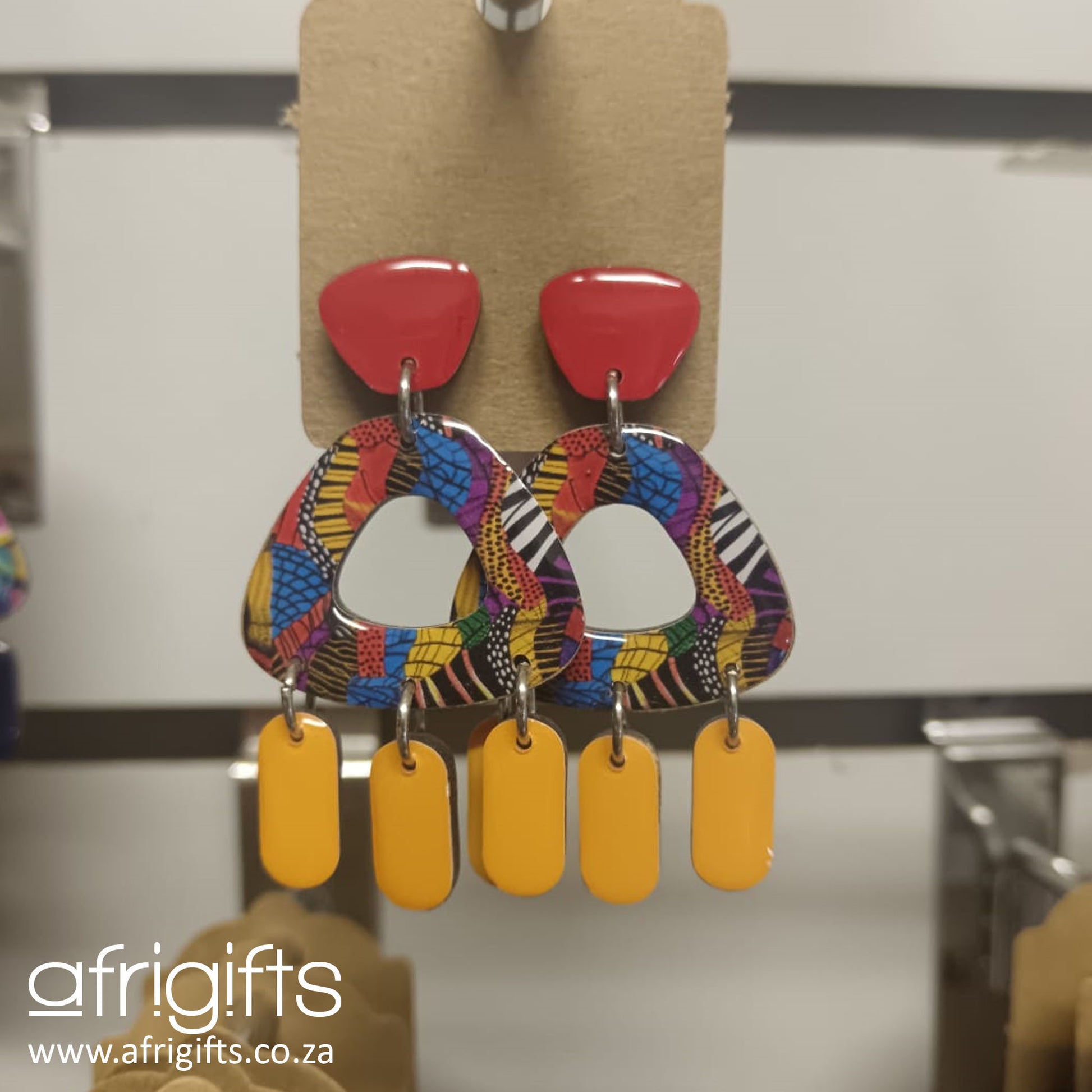 The Trinity earring is all about movement, colour, and balance. Designed with three distinct elements, each layer brings something different to the design — a bold stud, a beautifully printed centrepiece, and playful dangling accents that move as you do.